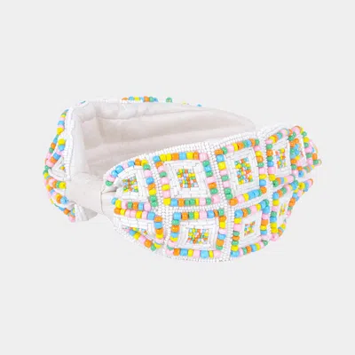 FASHNZFAB Square Patterned Multi Beaded Headband In White