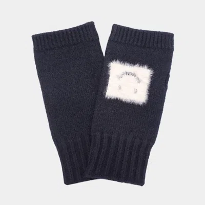 Square Smile Face Accent Fingerless Knit Gloves In Blue
