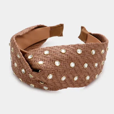 FASHNZFAB Stone Embellished Straw Twisted Headband In Brown