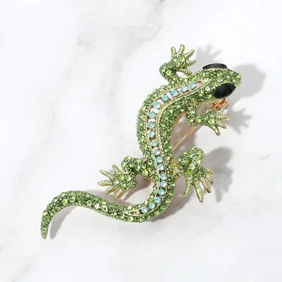 FASHNZFAB Stone Paved Lizard Pin Brooch In Green