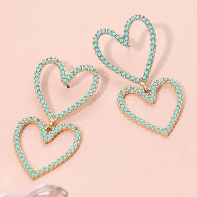 Stone Paved Open Heart Link Dangle Earrings In Multi