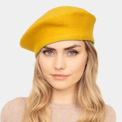 FASHNZFAB Stretchy Solid Beret Hat In Yellow