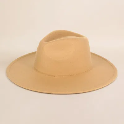 FASHNZFAB Structured Solid Wide Brim Fedora Hat In Sand
