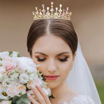 FASHNZFAB Teardrop Marquise Stone Cluster Embellished Princess Tiara In Multi