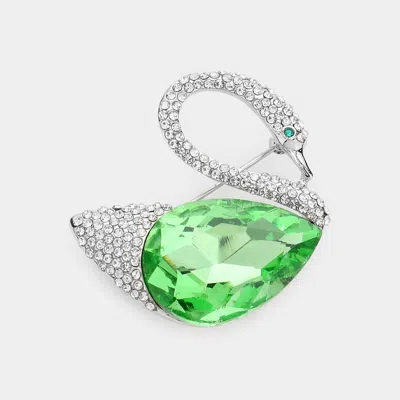 FASHNZFAB Teardrop Stone Accented Swan Brooch In Green