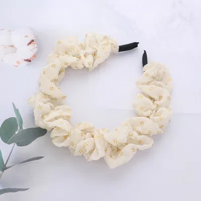 FASHNZFAB Tiny Flower Pattern Printed Scrunchie Headband In Sand