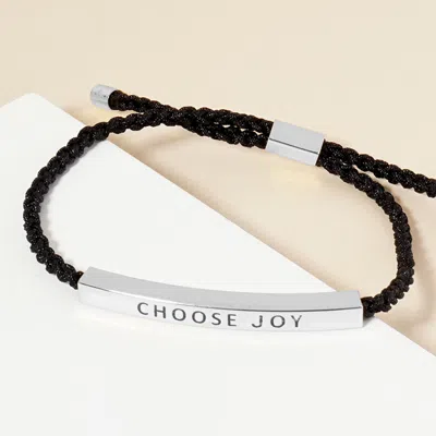 White Gold Dipped Choose Joy Message Bar Pointed Rope Adjustable Cinch Pull Tie Bracelet Rhodium In Multi