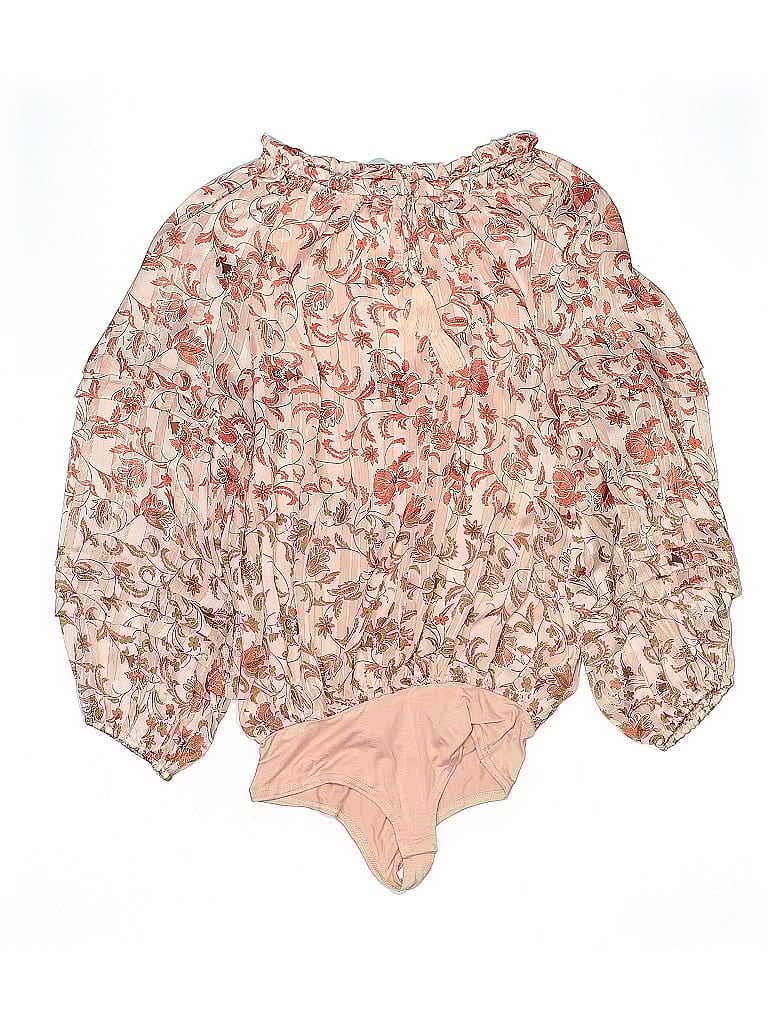 Fate Bodysuit, Size: Small. Item Details: Ivory, Floral Pattern, Ruffles Neckline, Long Sleeve, Women's Tops, 100% Polyester
