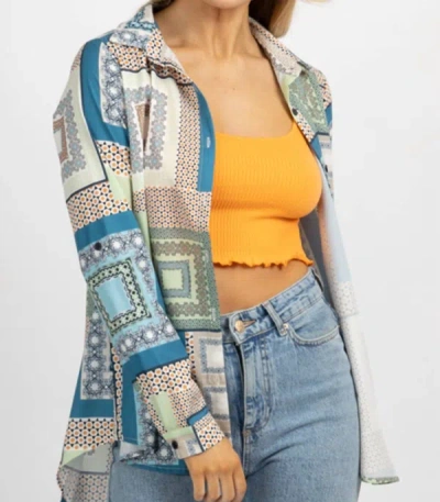 FATE BY LFD Patterned Button Down In Green + Steel Blue In Multi