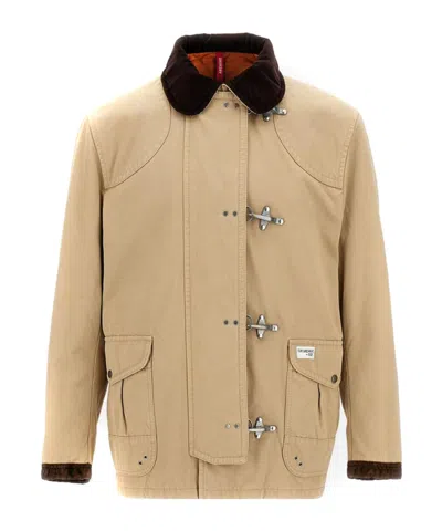 FAY Canvas Jacket With Button Accents And Front Pockets In Brown
