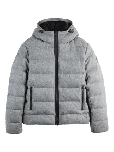 FAY Double-front Down Jacket In Carded Wool Flannel In Gray
