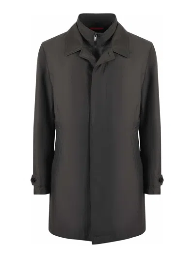 Fay double front nylon jacket. Anti-drop treatment. Padded with technical wadding. High collar bib with zip closure. Closure with buttons hidden by a placket. Diagonal pockets. Internal zip pocket. Epaulettes on the cuffs with buttons. Logo patch applied inside.Size in photo M100% polyesterPadding: 100% polyester