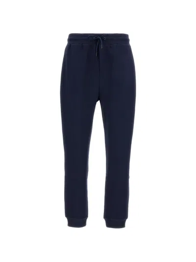Blue cotton fleece sweatpants Adjustable elasticated waistband with drawstring Ribbed knit elasticated cuffs Side pockets One rear patch pocket with logo patch Composition: 80% Cotton, 15% Polyester, 5% Elastane