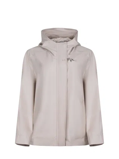 Fay jacket made of beige nylon. Water-repellent. Hooded. Long sleeves. Double-slider zip closure with snap buttons hidden by a placket. Side pockets. Fay metal tab on the chest in silver. Adjustable drawstring at the back. 100% polyester Made in Italy