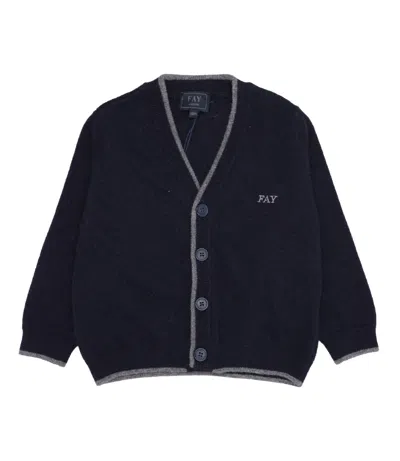 - Wool and chashmere - V-neckline - Front button closure - Long sleeves with ribbed cuffs - Embroidered Fay logo on left side chest - Ribbed color piping - Bottom with ribbed hem - Regular fit