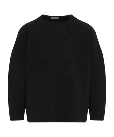 Fear of god ottoman straight neck black virgin wool pullover. crafted in black virgin wool, horizontal rib all over, crew neck, dropped shoulders, long sleeves, straight hem.