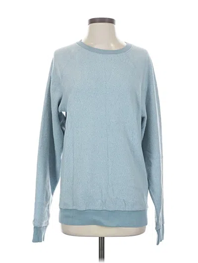 feat Pullover Sweater, Size: Small. Item Details: Blue, Solid Pattern, Crew Neck, Long Sleeve, Women's Tops