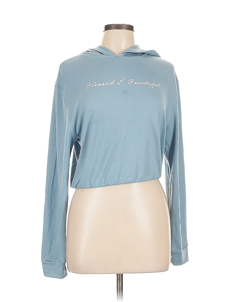 Feathers Sweatshirt, Size: Large. Item Details: Blue, Cowl Neck, Long Sleeve, Women's Tops, Polyester/Spandex