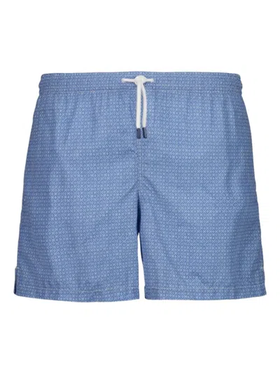 FEDELI Madeira Patterned Swim Shorts In Blue