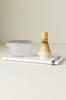 Includes a ceramic bowl, whisk stand, and tea tray; a bamboo whisk; and a stainless steel spoon and sifter Ceramic, bamboo, stainless steel, silicone, glass Bowl, Stand, Spoon, Sifter: Dishwasher safe Tea Tray, Whisk: Hand wash Imported Matcha Set by Fellow in White, Size: Small at Anthropologie