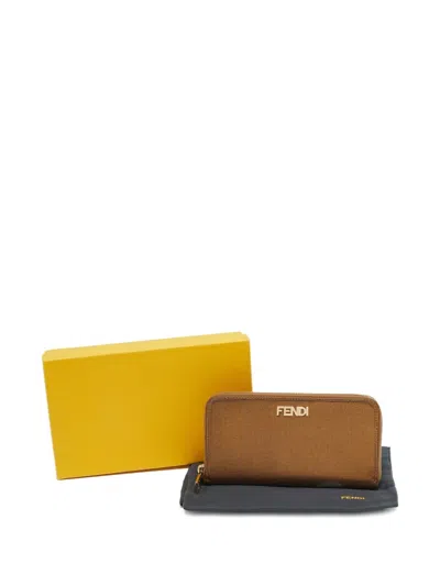 Leather|-|Fair|The Fendi wallet is a luxurious blend of elegance and functionality. Crafted from smooth leather with a striking gold embossed Fendi logo, this wallet offers ample space for cards, cash, and coins. The zip-around design ensures your essentials stay secure, while the sleek exterior adds a touch of opulence to your everyday accessories.
