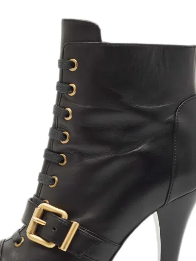 Pre-owned 125mm Lace-up Buckle-detail Boots In Black