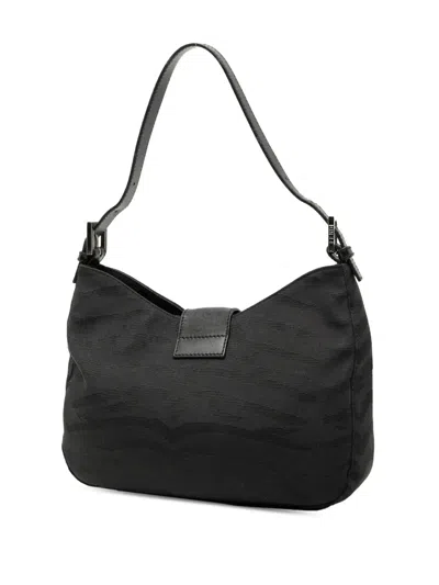 Pre-owned 2000-2010 Ff Zebra Print Canvas Shoulder Bag In Black