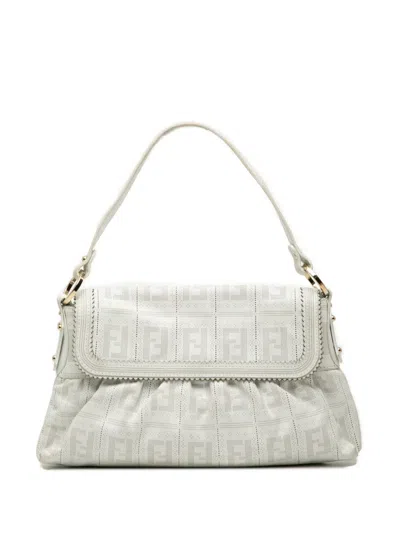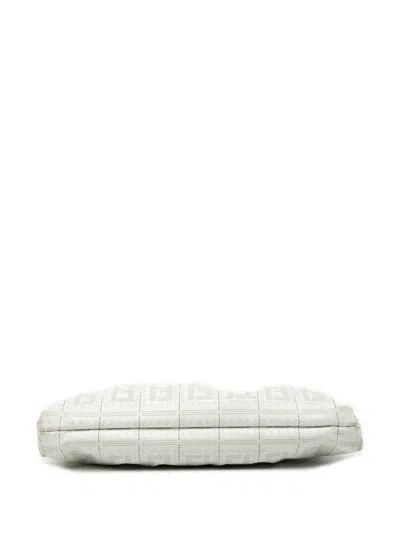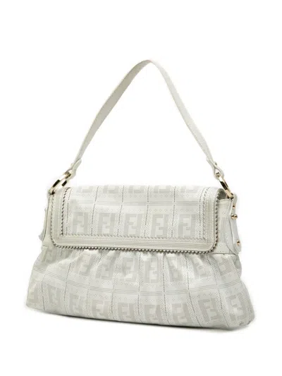 Pre-owned 2000-2010 Small Zucca Perforated Leather Chef Flap Shoulder Bag In White