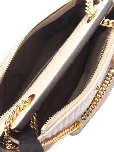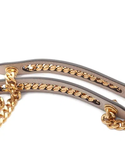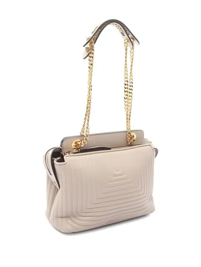 2000s grey beige leather gold-tone hardware quilted finish chain-link shoulder strap top zip fastening main compartment
