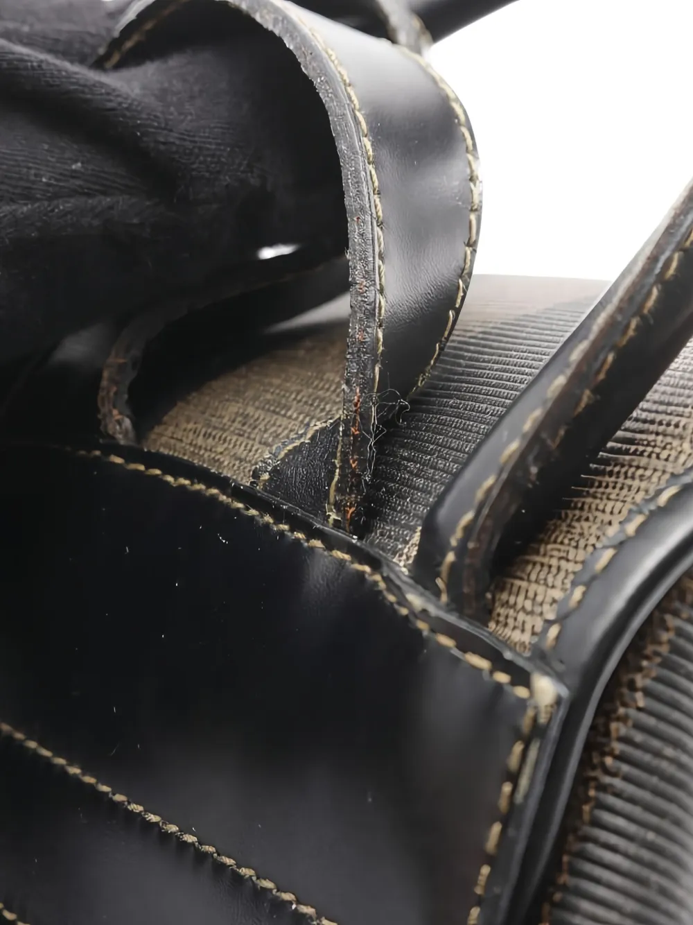 2000s brown striped design top handle front zip pocket drawstring fastening gold-tone hardware internal zip pocket