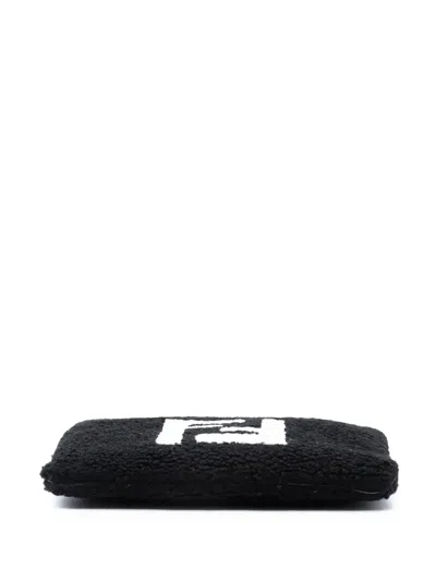Pre-owned 2010-2025 Shearling Ff Flat Pouch Clutch Bag In Black