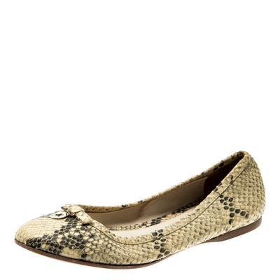 Pre-owned Beige Python Leather Bow Detail Ballet Flats Size 38