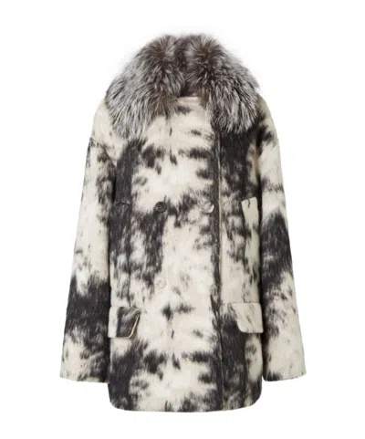 FENDI Black And White Frosted Fauna Wool Coat In Multi