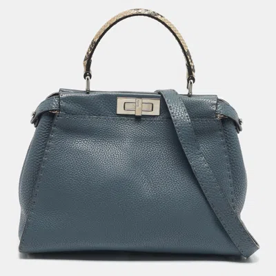 Pre-owned Blue/beige Leather And Python Medium Peekaboo Top Handle Bag