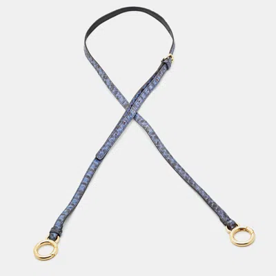Pre-owned Blue/black Python And Leather Adjustable Shoulder Bag Strap