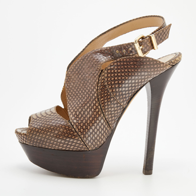 Pre-owned Brown Python Embossed Leather Platform Slingback Sandals Size 38