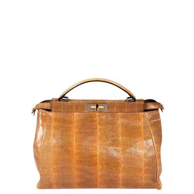 Pre-owned Brown Python Mini Peekaboo Top Handle Bag