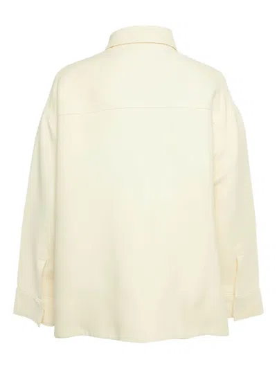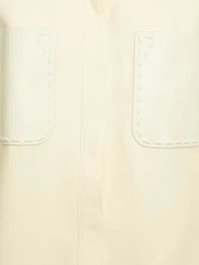 cream oversized button closure leather pockets chain detail Condition: GOOD. This previously owned and used item is in good condition with minimal signs of use. This may include fading of material or plating and scratches.
