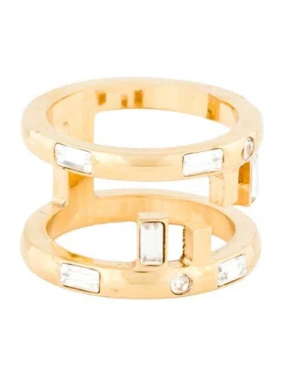 Gold-Tone Metal & Crystal Includes Designer Box | Fendi Crystal First Band Ring, Women's 6.5