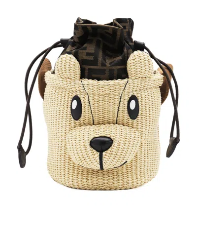 Designed in the shape of a bear, it features a drawstring closure and adjustable shoulder straps.