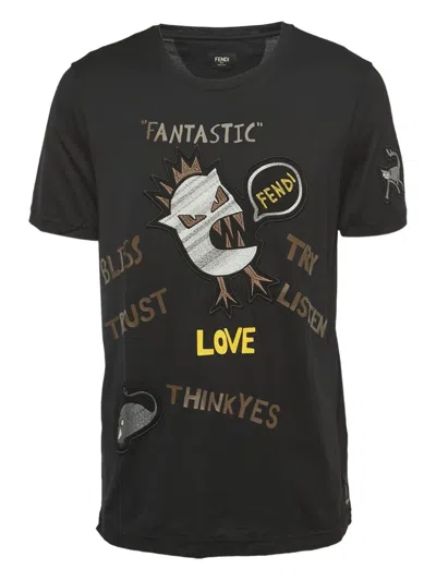 Pre-owned Embroidered Patchwork T-shirt In Black
