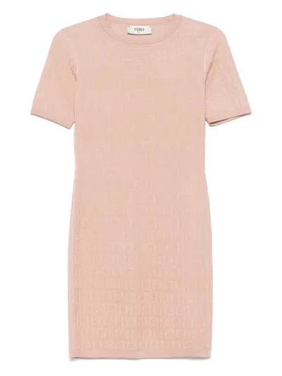 FENDI Ff Jacquard Knitted Mini Dress In Pink