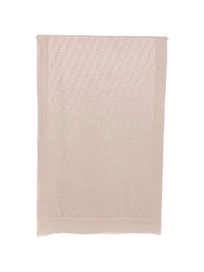 FENDI Ff Silk Rectangular Stole Frayed Edges In Metallic