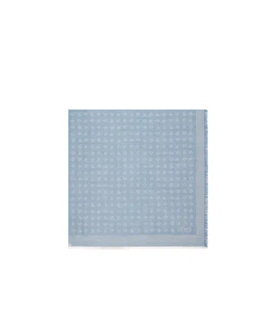 FENDI Ff Silk Stole Rectangular Shape Frayed Edges In Gray
