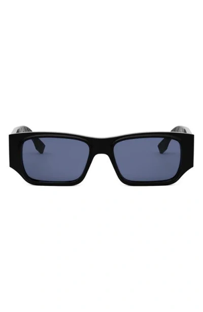 FENDI Ff Squared 54mm Rectangular Sunglasses In Shiny Black / Blue