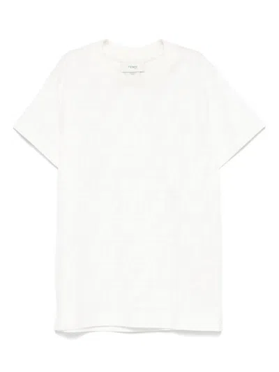 white cotton lightweight jersey signature FF-pattern print crew neck short sleeves straight hem