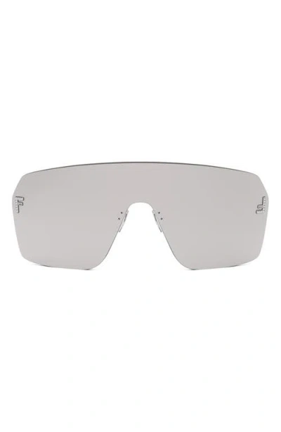 FENDI ' First Rectangular Shield Sunglasses In Shiny Palladium/smoke Mirror