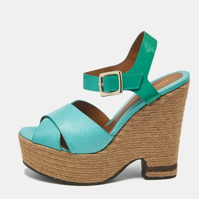 Pre-owned Green Lizard And Patent Leather Espadrille Wedge Sandals Size 40