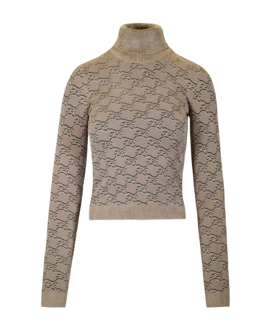 FENDI High-necked Ff Karligraphy Pattern Pullover In Nude