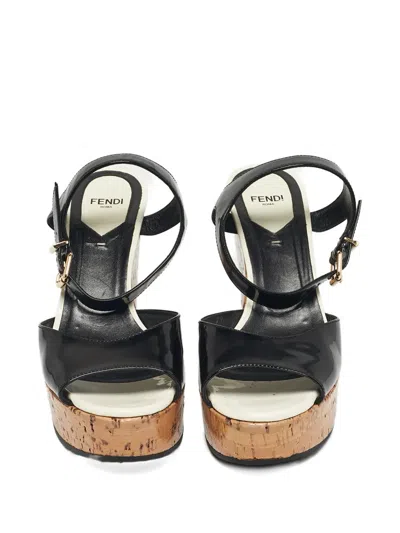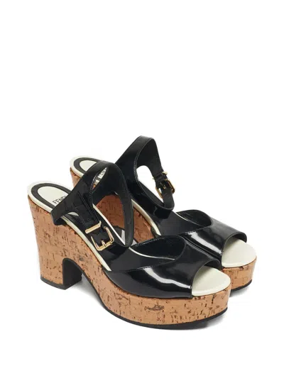 black platform sole block heel patent leather straps gold-tone buckle closure This piece comes complete with a protective dust bag. Condition: GOOD. This previously owned and used item is in good condition with minimal signs of use. This may include fading of material or plating and scratches.